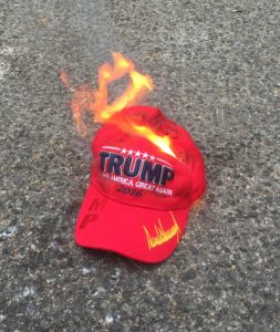 burning trump hat